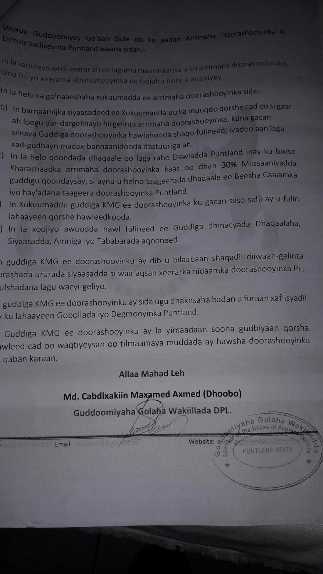 These Puntland New House of Representatives’ Resolutions demanding action and Government commitment to holding elections have the potential to become historic, if President Deni doesn’t move forward to Puntland democratization