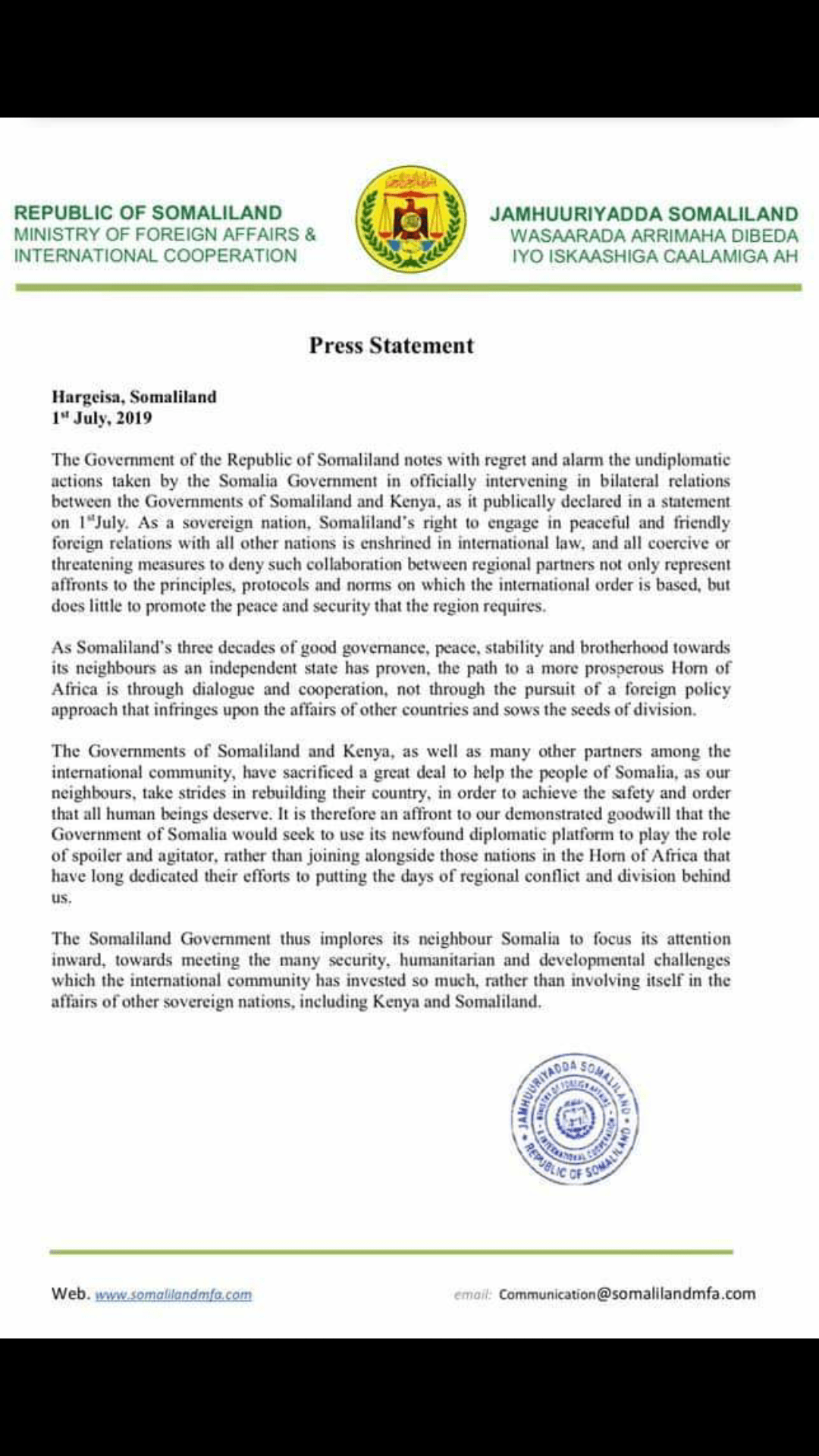 In line with the delusional tradition of misinforming and misleading Somalis in the Northwest Regions.