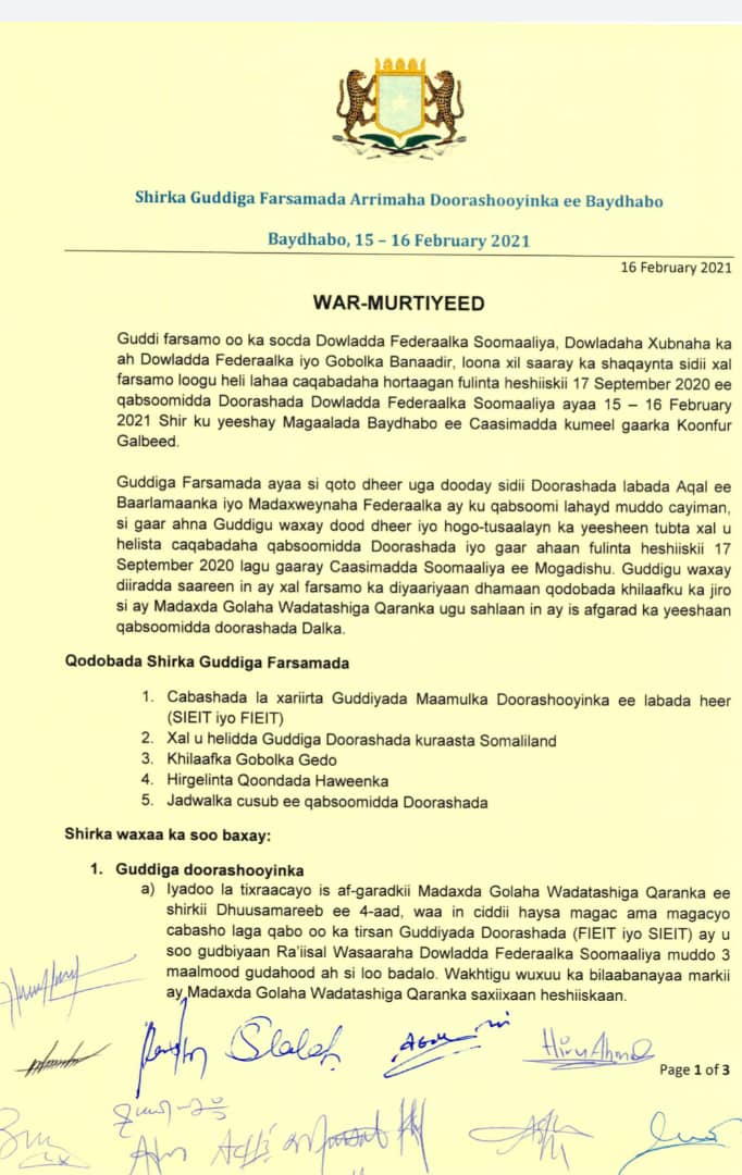 Parties to current Mogadishu talks must do more to do something about the breakdown of communication and collaboration. This is more important than the agreement.