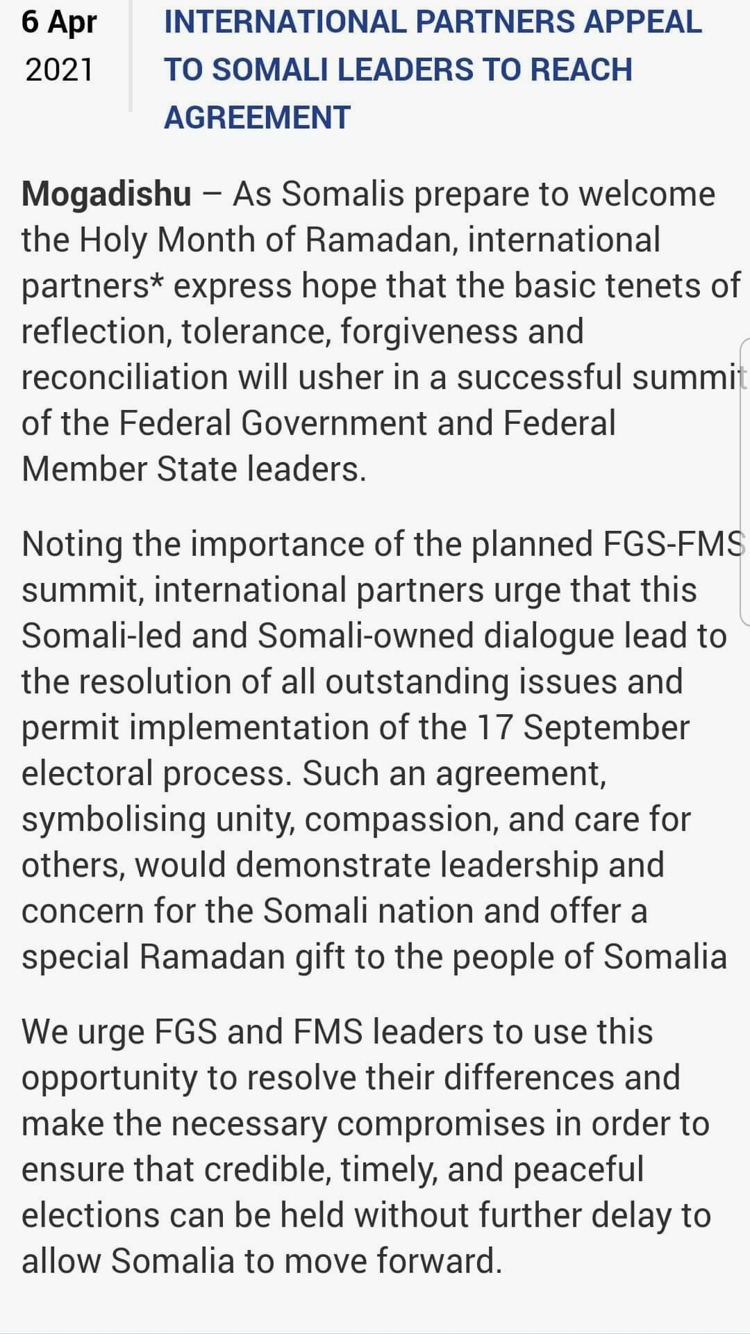 You would agree that this attitude of deliberations on personal whims is the core and most dangerous conditions that brought Somalia to where she finds itself in today, reducing it to a status where foreign diplomats of non-Muslim world are now urging Somali leaders at Mogadishu talks to reach at compromise resolutions of their problems before the beginning of Ramadan. Shame!