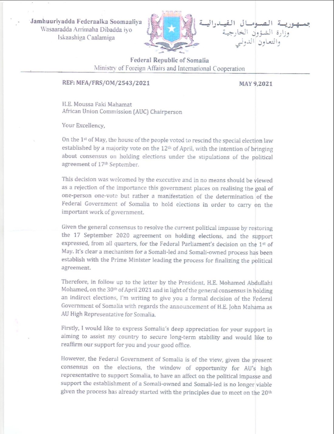 FARMAJO: BACKTRACKING ON MEDIATION SOUGHT FROM THE AFRICAN UNION
