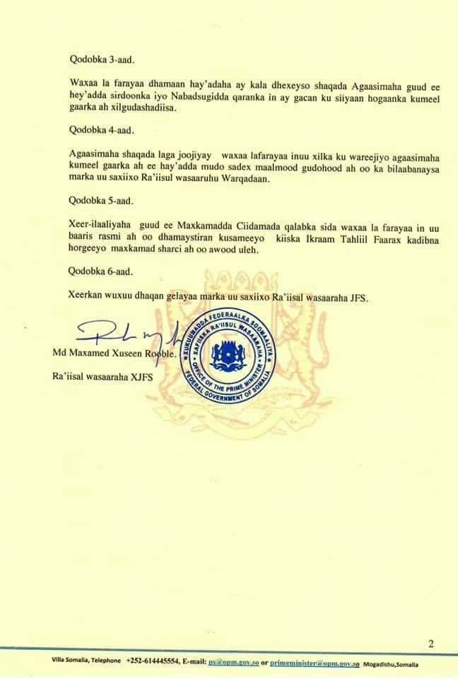 Arrintu Fahad ma dhaafi doontaa. Farmaajo muxuu ka ogyahay arrintan, goorma ayuuse ogaadey,