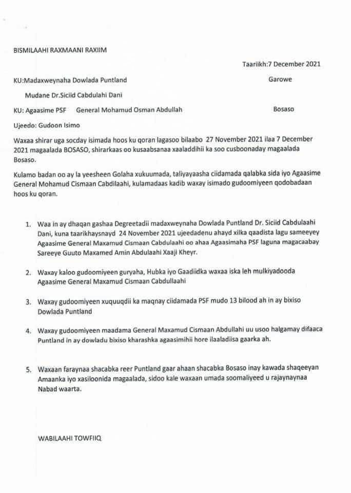 “The government of Puntland is strongly committed to safeguarding the peace and stability of Puntland with respect to the rule of law and constitutional legitimacy,” Mr. Deni’s administration said.