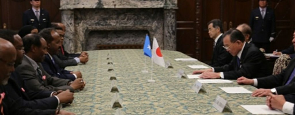 Hassan in a meeting in Japan with no one taking any notes from Somali side. It was his first term as Somalia’s President. Look at Japanese side, all with papers and pen.