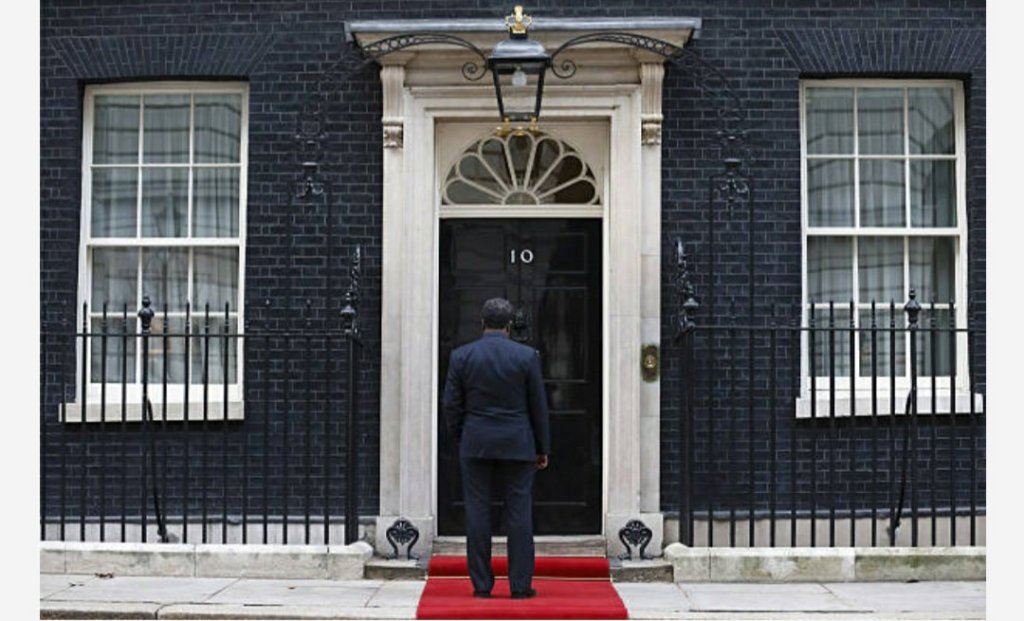 Hassan at door of 10 Downing Street alone with no one to receive him.