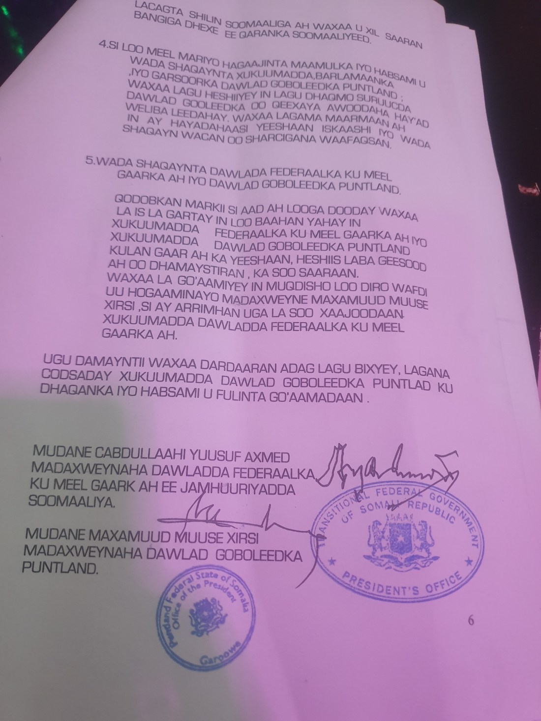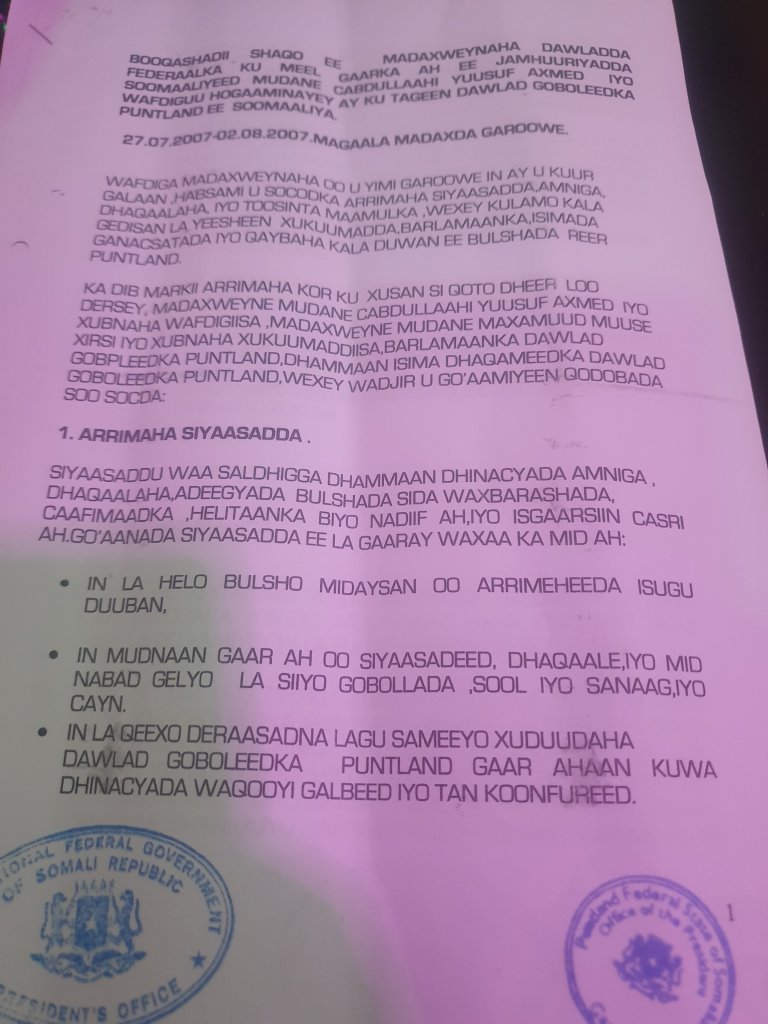 DOCUMENTING WORKING RELATIONS BETWEEN FGS AND PUNTLAND STATE