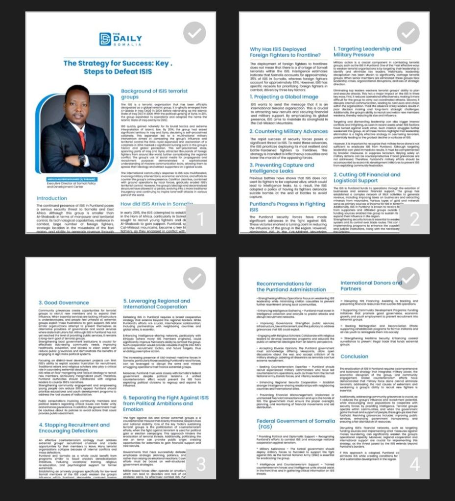 The continued presence of ISIS in Puntland poses a serious security threat to Somalia and East Africa. Although this group is smaller than Al-Shabaab in terms of manpower and territorial control, its technological capabilities,resilience in