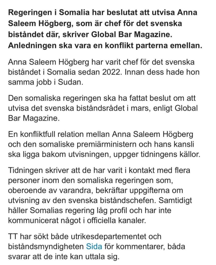 Tensions now flared between Somalia and Sweden over a US$10 million agreement to deport Somali refugees. A Swedish diplomat, Anna Saleem Hogberg, Counsellor and SIDA Representative, has expelled after she exposed the deal, revealing that US$4 million had already been transferred to Mogadishu. The diplomat’s expulsion (declared persona non grata) highlighted the government’s prioritization of revenue over refugee welfare. Critics allege that funds were diverted into private pockets rather than aiding returnees, exacerbating Mogadishu’s humanitarian crisis. This incident underscores broader accusations of corruption within Hassan Sheikh Mohamud’s administration and its collusion with Djibouti.