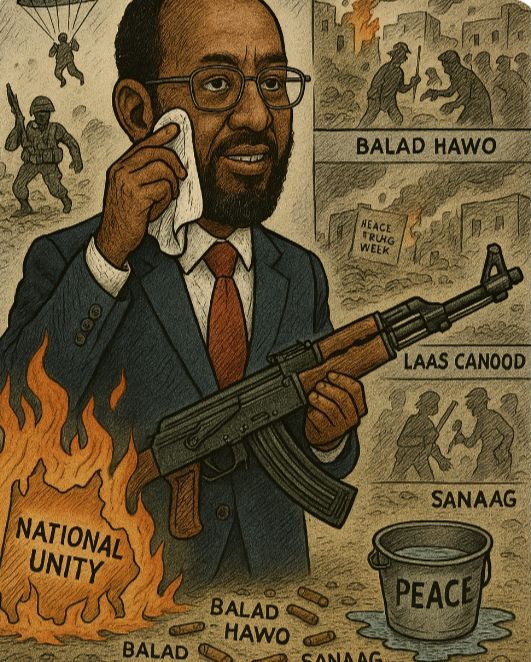 In the theatre of Somali politics, he’s both the playwright and the arsonist — penning scripts of peace while burning down the stage.