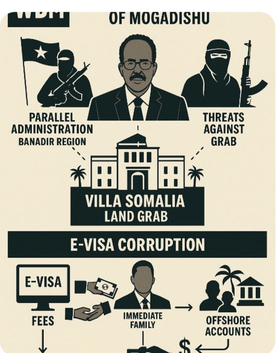 If the land grabs were not enough, the Federal Government’s flashy E-Visa project has turned into a textbook scandal. The system that was supposed to streamline travel and showcase Somalia’s “digital future” has become the equivalent of a tollbooth for presidential relatives.