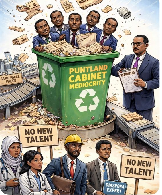 In functional governments, cabinet reshuffles are moments of renewal — a strategic recalibration of talent, vision, and competence. In Puntland today, however, reshuffles have become something else entirely: a ritual of recycling, a carousel of familiar faces rearranged like worn-out furniture in a room no one dares to renovate.