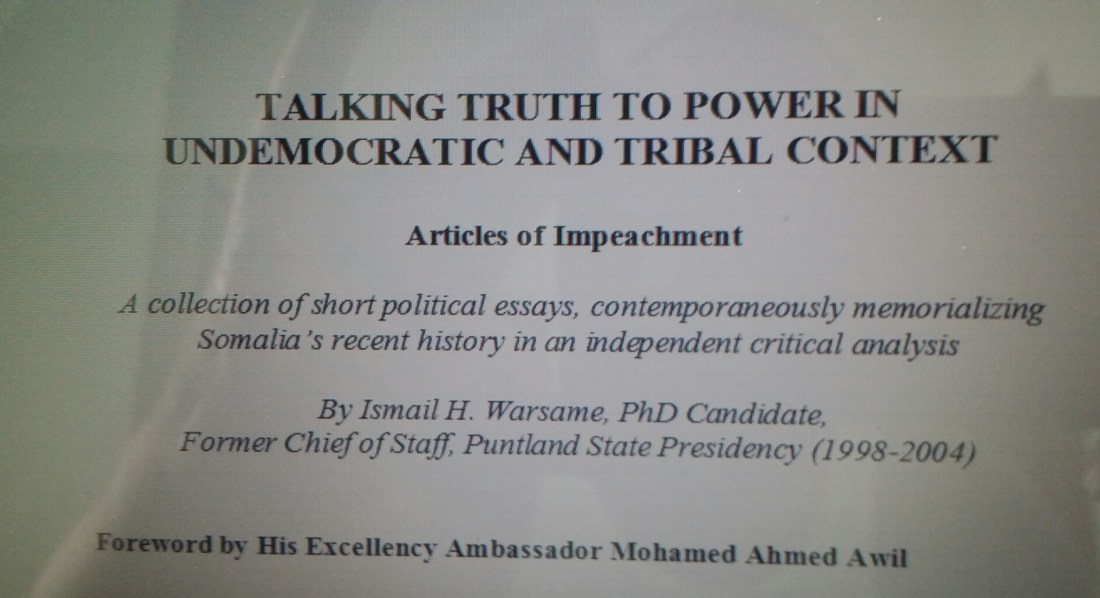 by Ismail H. Warsame, former Chief of Staff at Puntland State Presidency (1998-2004):