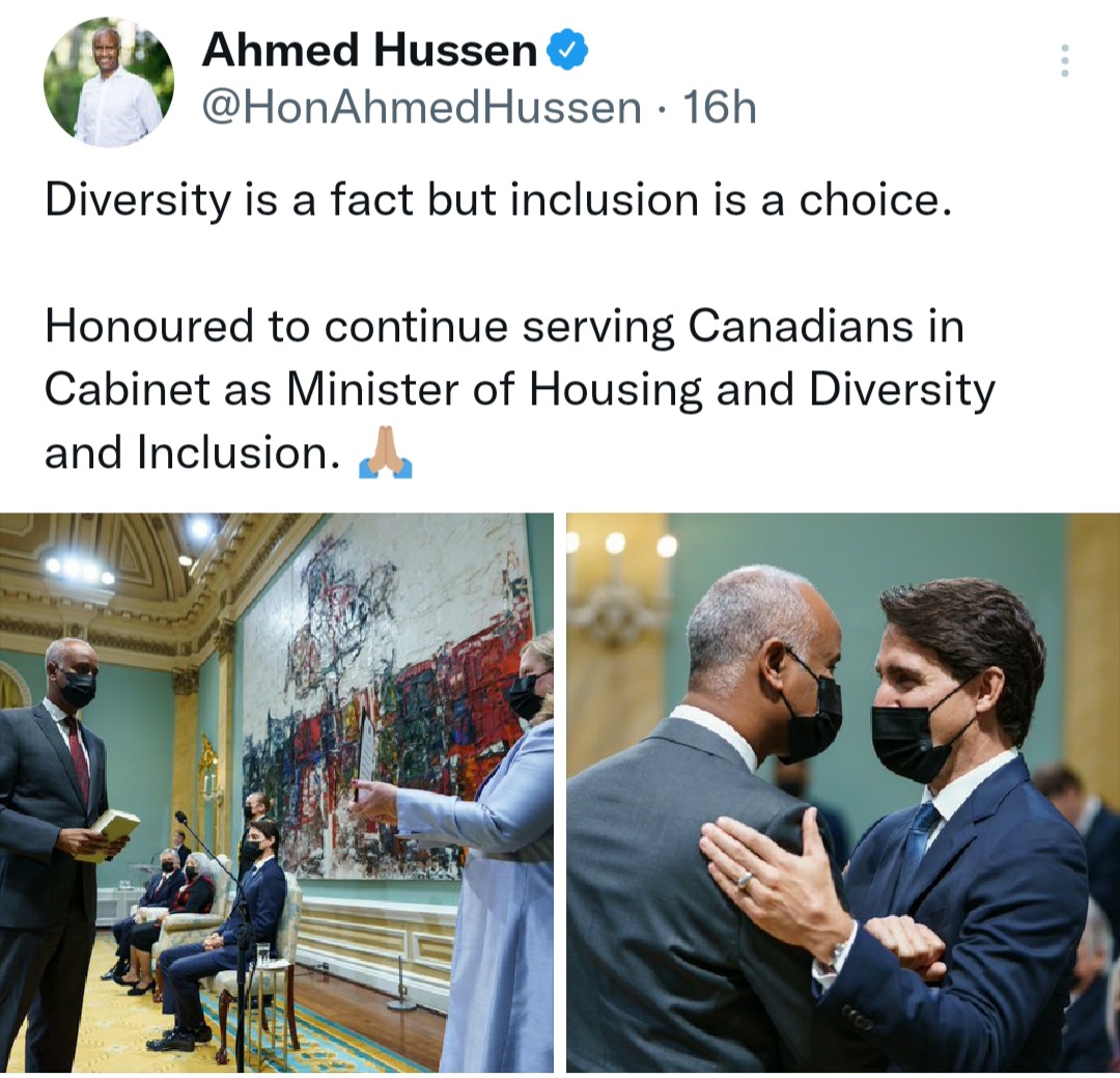 Minister Hussen now leads a major and complex department of Housing, Diversity and Inclusion, following the recent Federal election. Ministry of Housing has been created for the first time in the history of the government of Canada to address the thorny election issue on the acute and chronic housing shortages in that country. It is said to be among government priorities.