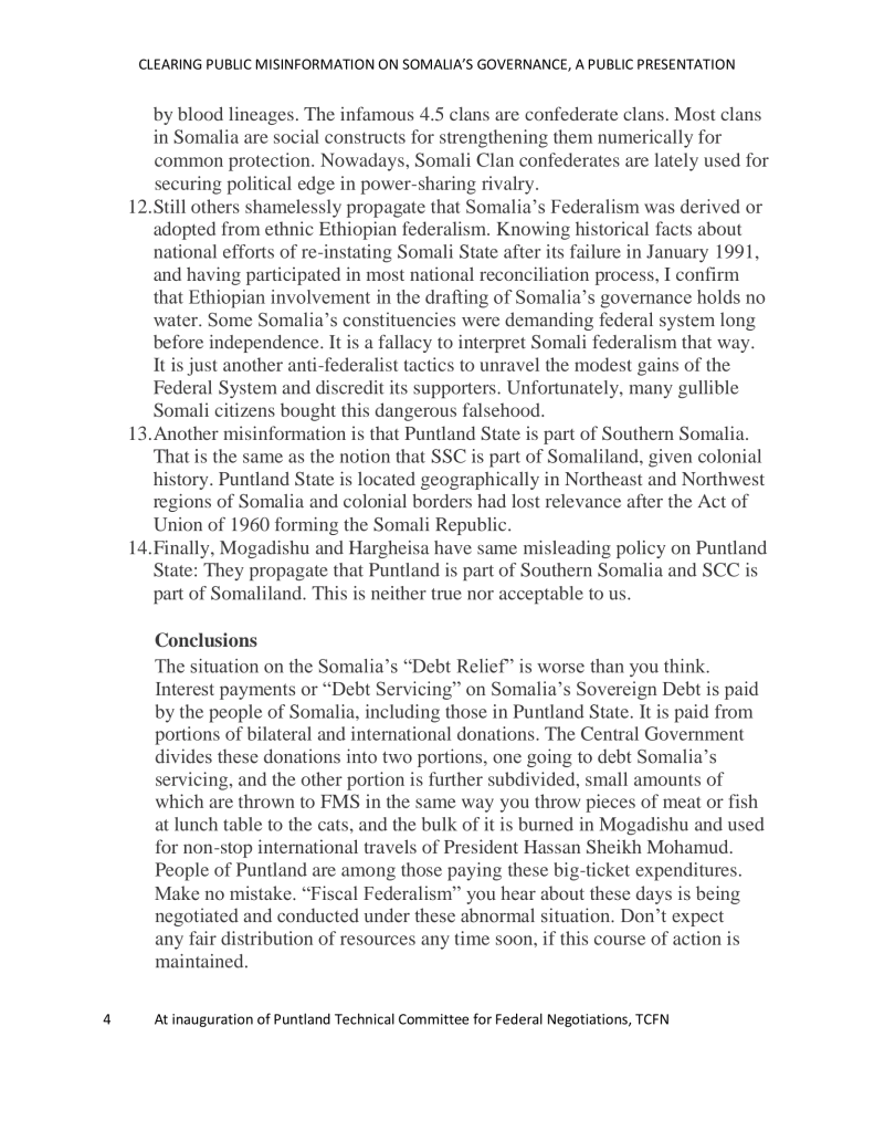 MISINFORMATION OR MISINTERPRETATION OF FEDERALISM IN SOMALIA